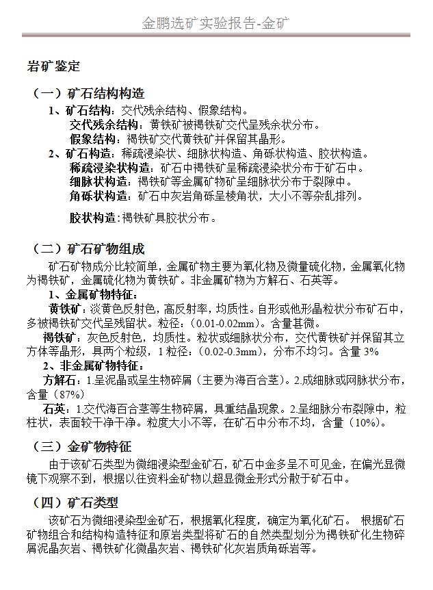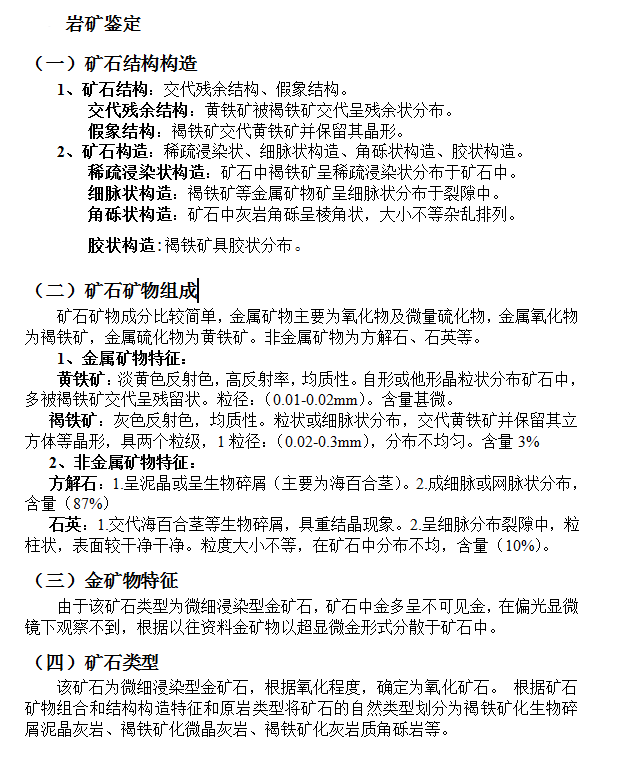 原礦物質(zhì)成分測(cè)定包括分析礦石的結(jié)構(gòu)構(gòu)造、礦石礦物組成、 主要金屬與非金屬礦物特征、礦石類型。以下是對(duì)一金礦客戶 提供礦樣原礦物質(zhì)成分測(cè)定的內(nèi)容。