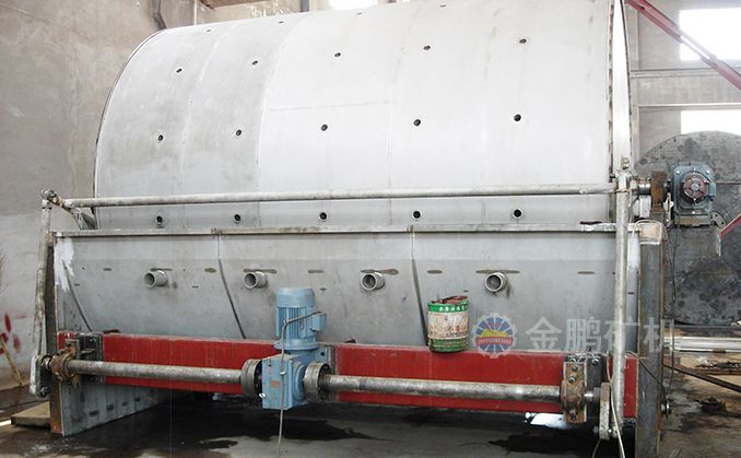 外濾式筒形真空過濾機主要由筒體、傳動機構(gòu)、分配頭、主軸承、攪拌器、礦漿槽、刮板和繞線機構(gòu)等構(gòu)成。