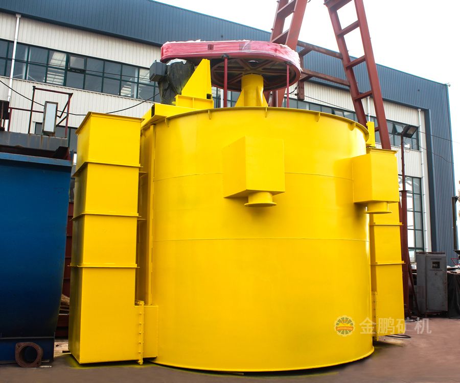 圓形浮選機是在浮選旋流器的基礎上開發的一種新型的旋流離心浮選機,采用深槽設計,槽體為圓柱形、平底、葉輪采用槽縫式橢圓形和上直下弧形葉片。低阻尼直懸式定子由支腳固定在槽底。圓形浮選機因其結構簡單、操作簡便、占地面積小、維護量小、高效節能等原因,已經逐漸取代了充氣式攪拌浮選機。