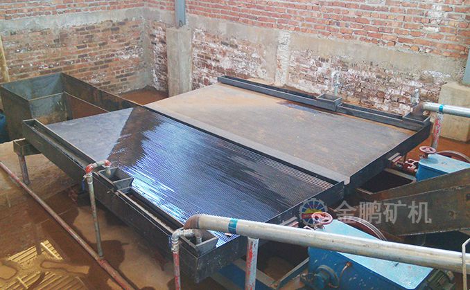 多年實踐證明:除鐵器+跳汰機+搖床+斜管濃密箱的組合系統重選回收率高,流程暢通、運行可靠,跳汰機通常作為粗選設備安放于磨機分級設備之間,磨機排礦首先給至跳汰機,其分選出的重礦物給至搖床再選,輕礦物自流至分級機。最終的重選毛金品位可達40-45%,可直接冶煉成高純度金錠。在這種配置中,跳汰機是典型的體現“能收早收”原則的重選設備,有利于提高重選和總回收率;離心機+搖床的配置也在某些選金廠得到應用。
