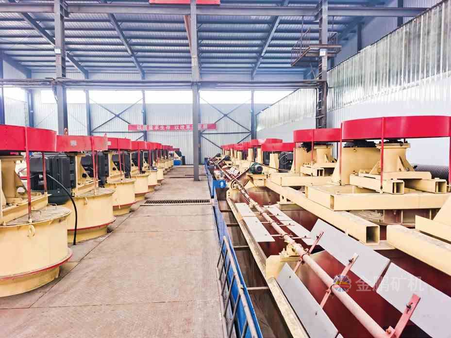 重選主要是用來對石墨礦石進行預處理,選出其中的重礦物,提前拋尾,石墨初步富集,再用浮選進一步提高石墨的固 定碳含量。當礦石中含有較多的黃鐵礦、褐鐵礦、石榴石、金紅石、透閃石、透輝石等比重較大的礦物時,就可以采用 重選對其預處理,達到初步富集,得到石墨粗精礦。粗精礦再采用浮選進一步富集。因此,重選只是對石墨礦進行預處 理實際生產中多數與浮選聯合使用,目前應用較少。